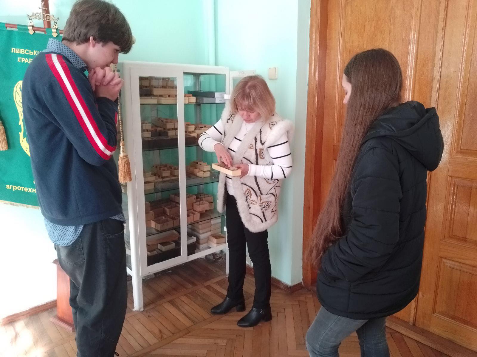 Здобувачі освіти групи ГТЗ-344 та ГТЗс-207 спеціальності Геодезія та землеустрій разом із викладачем Черніцькою Г.З. 18 листопада 2025 року провели виїзне заняття з дисципліни Грунтознавство на кафедрі агрохімії та грунтознавства Північного кампусу Львівського національного університету ветеринарної медицини та біотехнологій ім. С.З. Гжицького. Заняття проводила завідувач кафедрою Гаськевич Оксана Володимирівна, вона показала грунтові карти, та розповіла про методику вивчення агровиробничих показників грунтів за картографами. В лабораторії Агроскаут Центру ознайомилися з лабораторним і портативним обладнанням для дослідження грунтів та рослинної продукції. Викладачі кафедри показали принцип роботи приладів при визначені вмісту в грунтах калію, кальцію, магнію, сірки, солей, а також з приладів для визначення вологості освітленості, кислотності грунтів. Також здобувачі освіти розглядали різні види мінералів і гірських порід, за монолітами грунтів вивчали ознаки грунтових горизонтів різних грунтів України.